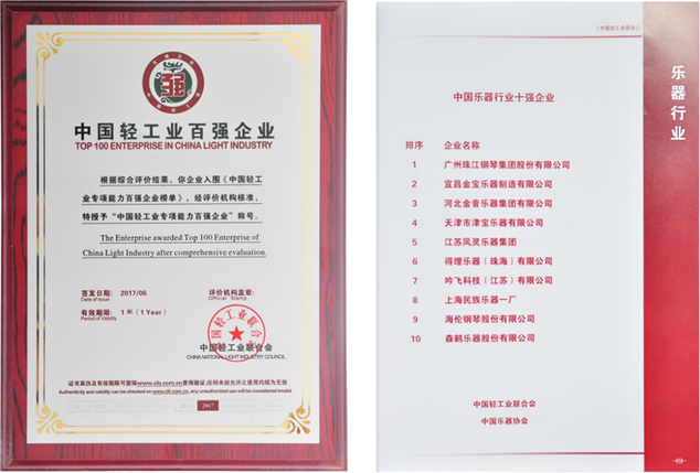 2017年6月20日,由中國輕工業(yè)聯(lián)合會舉辦的“智慧輕工”高峰論壇暨2017中國輕工業(yè)百強企業(yè)頒獎盛典在北京隆重舉行。吟飛科技(江蘇)有限公司再次榮登“中國輕工業(yè)百強企業(yè)”和“中國樂器行業(yè)十強企業(yè)”榜單,暨入圍中國輕工業(yè)百強企業(yè)“電商能力”榜,頒獎盛典上得到了中國輕工業(yè)聯(lián)合會杜同和副會長的表彰。