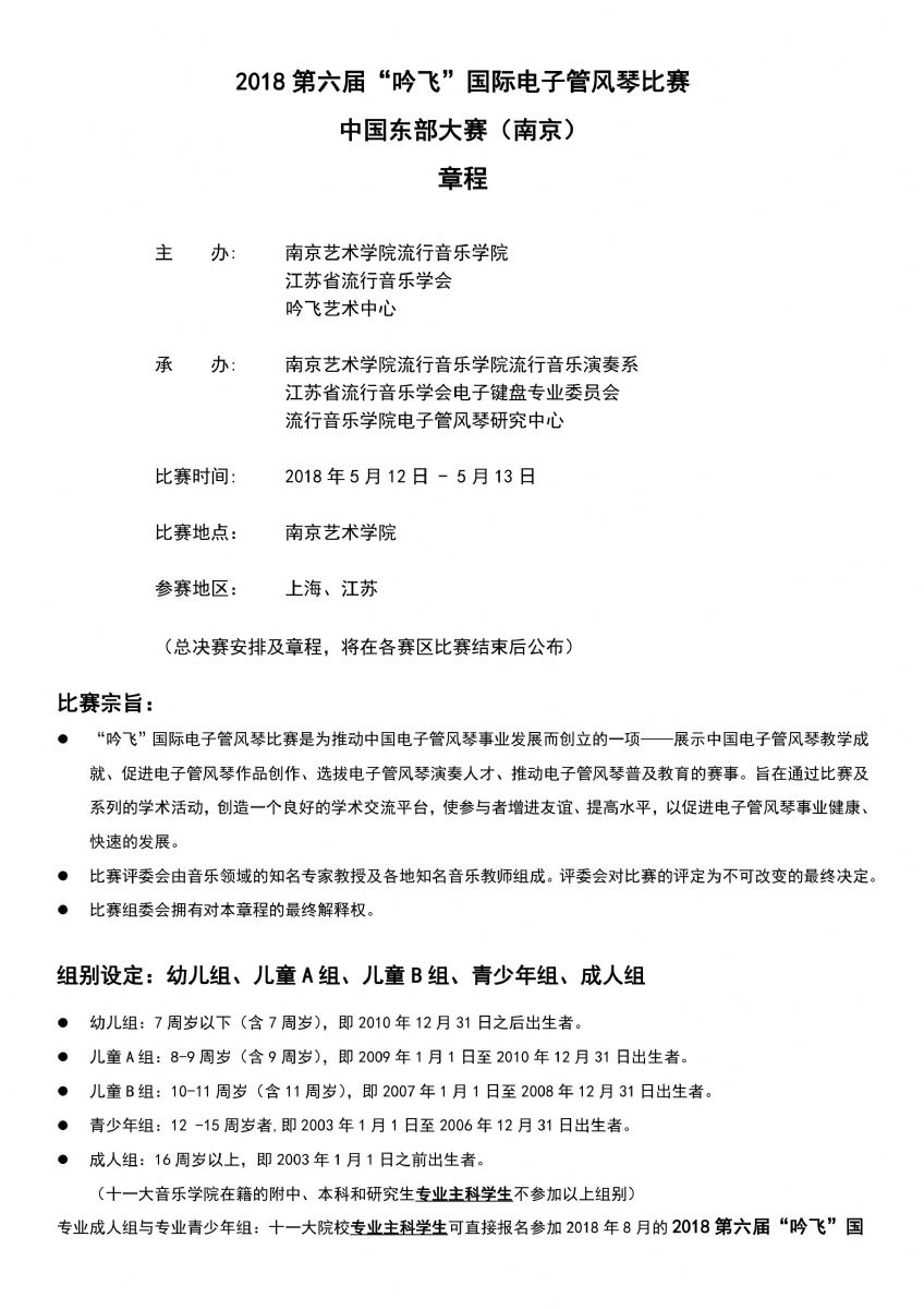2018第六屆“吟飛”國(guó)際電子管風(fēng)琴比賽中國(guó)東部大賽(南京)賽區(qū)報(bào)名通道已經(jīng)開啟,將于4月30日關(guān)閉,請(qǐng)各位要報(bào)名的選手不要錯(cuò)過啦~