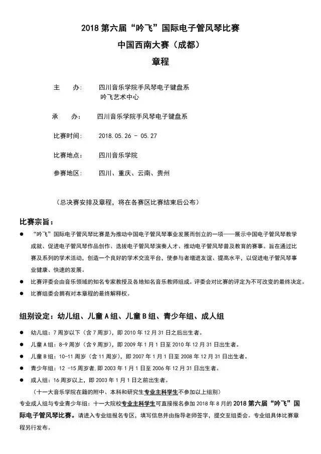 2018第六屆“吟飛”國際電子管風(fēng)琴比賽中國西南大賽(成都)報名通道將于4月16日—5月14日開啟,請各位要報名的選手不要錯過啦~