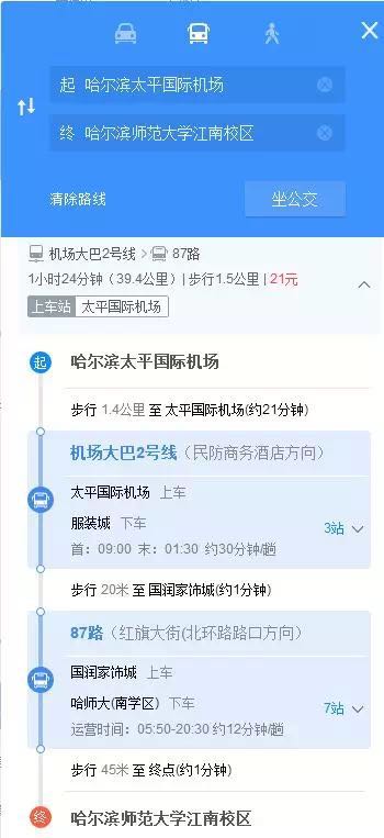 哈爾濱太平國際機場→哈爾濱師范大學江南校區(qū)