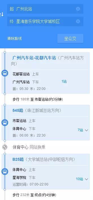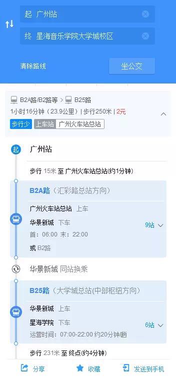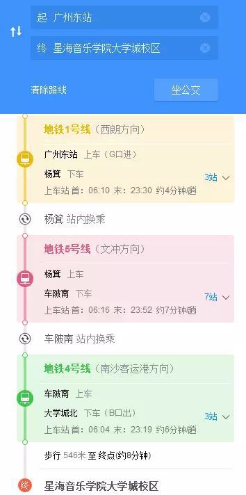 站前路→建設路→農(nóng)新路→G4W2許廣高速→G15沈海高速→S4華南快速→小洲東路→小洲路→大學城外環(huán)西路→星海音樂學院大學城校區(qū)