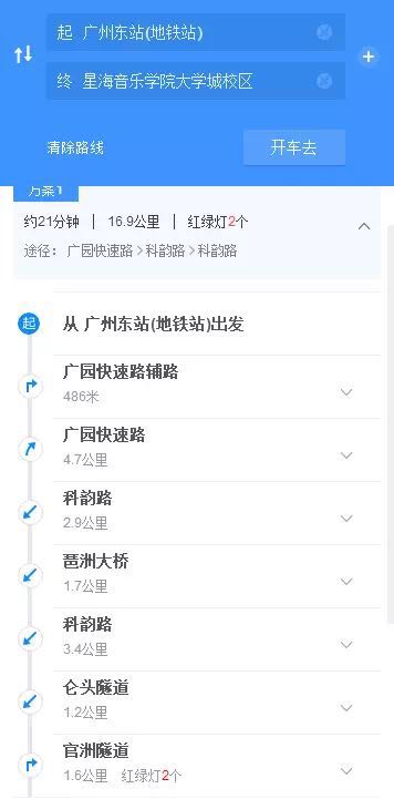 廣州快速路輔路→廣園快速路→S4華南快遞→小洲東路→小洲路→大學城外環(huán)西路→星海音樂學院大學城校區(qū)