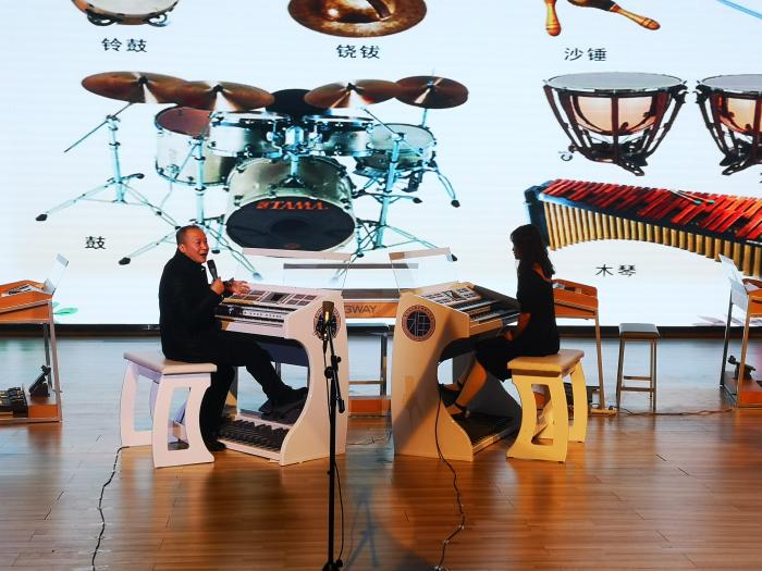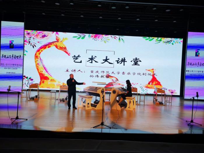電子管風(fēng)琴作為“現(xiàn)代器樂(lè)之.王”,以其恢宏的交響樂(lè)隊(duì)氣勢(shì)和近千種音色的無(wú)限組合,演繹著琴鍵上的多彩世界。2019年12月30日晚,重慶兩江新區(qū)博雅小學(xué)將這種新興器樂(lè)演奏方式搬進(jìn)學(xué)校,在博雅演播廳舉辦了主題為“琴鍵上的多彩世界”博雅小學(xué)2020年新年音樂(lè)會(huì)。這種獨(dú)特的跨年方式,給全體師生的緊張學(xué)習(xí)生活注入了幾分活力與樂(lè)趣,讓學(xué)生們接受了一場(chǎng)高雅的藝術(shù)熏陶?;顒?dòng)期間,重慶師范大學(xué)音樂(lè)學(xué)院副院長(zhǎng)、碩士研究生導(dǎo)師孫偉教授做了題為《藝術(shù)大講堂》的專題講座,讓在座師生進(jìn)一步認(rèn)識(shí)了電子管風(fēng)琴這種樂(lè)器。