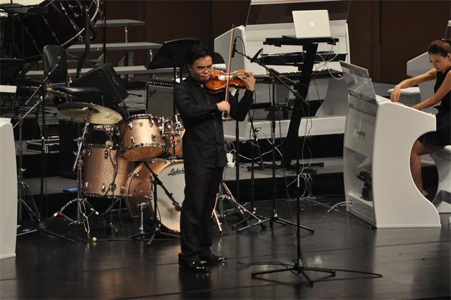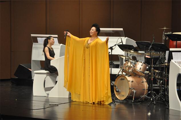 開幕式音樂會首先由著名管風(fēng)琴與電子管風(fēng)琴演奏家、上海音樂學(xué)院現(xiàn)代器樂與打擊樂系主任-朱磊教授填詞、改編,吟飛藝術(shù)中心、常州華聲合唱團(tuán)以及上海音樂學(xué)院打擊樂團(tuán)共同合作演繹的電子交響與合唱作品---《龍吟飛揚(yáng)》氣勢恢宏、大氣磅礴的拉開了序幕。接下來,著名青年古箏演奏家宋心馨與吟飛藝術(shù)中心的兩位青年電子管風(fēng)琴演奏家劉丹丹、齊靚攜手合作,完美上演了動人至極的古箏名曲《蒼歌引》;著名青年歌唱家、總政歌劇團(tuán)國家一級演員湯子星與吟飛團(tuán)隊(duì)的青年電子管風(fēng)琴演奏家曹潔瓊、上海音樂學(xué)院碩士生在讀的侯雪凝共同帶來了一首自作曲《共圓中國夢》;年僅14歲的未來之星-田炎智為大家?guī)砹祟H具技巧難度的電子管風(fēng)琴獨(dú)奏《d小調(diào)托卡塔與賦格》;著名女高音歌唱家、中華全國總工會文工團(tuán)國家一級演員鄭詠老師,為現(xiàn)場聽眾高歌了一曲家喻戶曉的《我愛你,中國》;著名青年演奏家、中央音樂學(xué)院附中室內(nèi)樂及小提琴專業(yè)教師岳麟與吟飛藝術(shù)中心的青年電子管風(fēng)琴演奏家劉丹丹合作的一曲小提琴名作《流浪者之歌》令人贊嘆不已;著名抒情花腔女高音歌唱家吳碧霞與吟飛團(tuán)隊(duì)的青年電子管風(fēng)琴演奏家曹潔瓊共同演繹的一首《帕米爾,我的家鄉(xiāng)多么美》,把整個音樂會推向了最高潮。而本場音樂會的尾聲則上演了兩曲分別由青年電子管風(fēng)琴演奏家巫丹霞、趙偉強(qiáng)作曲、編曲,并親自與上海音樂學(xué)院爵士樂團(tuán)共同演繹的原創(chuàng)佳作---《三言兩語》和《音爆》,為金鐘之星開幕式音樂會畫上了圓滿的驚嘆號。音樂會上,每一位歌唱家、演奏家都極具親和力,他們的同臺獻(xiàn)藝將整場音樂會推向一個又一個的高潮!