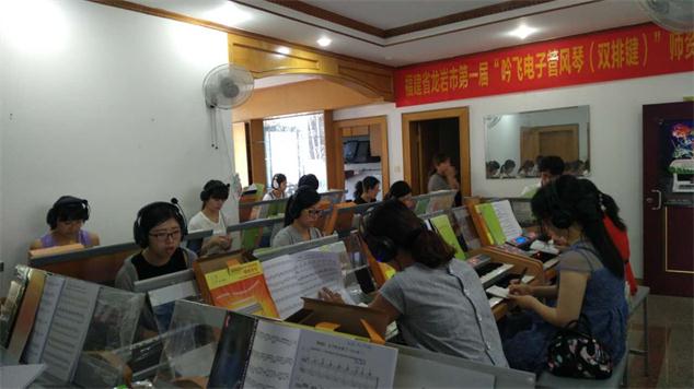 為了進一步了解福建省龍巖市電子鍵盤教學的發(fā)展狀況,加強與福建省龍巖地區(qū)電子鍵盤老師的教學交流,促進和推廣電子管風琴(雙排鍵)在福建省的普及教育,由吟飛科技(江蘇)有限公司、龍巖太陽琴行共同主辦的“吟飛科技電子管風琴(雙排鍵)龍巖市第一期教學交流活動”于2015年8月12-14日在龍巖太陽琴行舉行。這次活動由上海音樂學院雙排鍵專業(yè)碩士研究生畢業(yè)的蔡茅老師主講?;顒悠陂g蔡茅為福建省龍巖地區(qū)的鍵盤老師們詳細講解了“吟飛”電子管風琴(雙排鍵)的面板功能操作,上、下鍵盤演奏的技巧、腳鍵盤和上下鍵盤配合的應用等,使參加這次教學交流活動的鍵盤老師們對“吟飛”系列電子管風琴(雙排鍵)有了一次深入、細致的了解。也使參加培訓的十幾位鍵盤老師們對電子管風琴(雙排鍵)的普及教學和未來的發(fā)展有了進一步的認識。