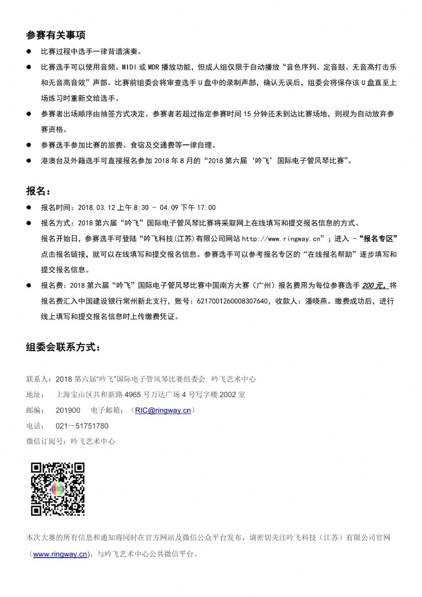 2018第六屆“吟飛”國際電子管風琴比賽中國南方大賽(廣州)賽區(qū)參賽指南和詳細賽程稍后也將發(fā)布,請隨時關(guān)注“吟飛科技(江蘇)有限公司官網(wǎng)www.qiandftg33.cn”和“吟飛藝術(shù)中心”微信公眾號。