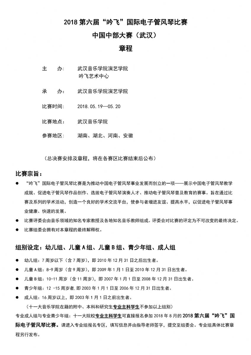 2018第六屆“吟飛”國(guó)際電子管風(fēng)琴比賽中國(guó)中部大賽(武漢)賽區(qū)參賽指南和詳細(xì)賽程稍后也將發(fā)布,請(qǐng)隨時(shí)關(guān)注“吟飛科技(江蘇)有限公司官網(wǎng)www.qiandftg33.cn”和“吟飛藝術(shù)中心”微信公眾號(hào)。