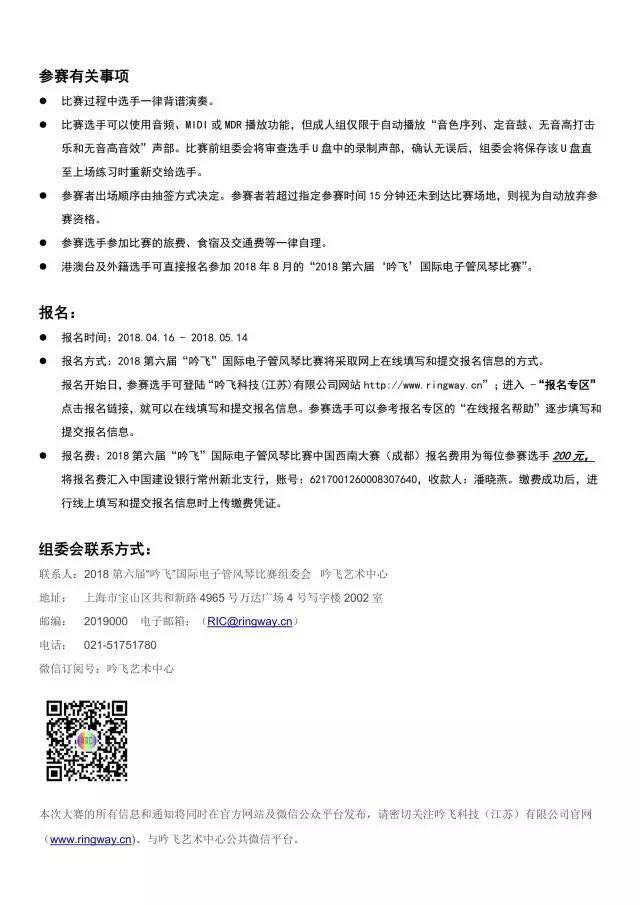 聯(lián)系人:2018第六屆“吟飛”國際電子管風(fēng)琴比賽組委會 吟飛藝術(shù)中心