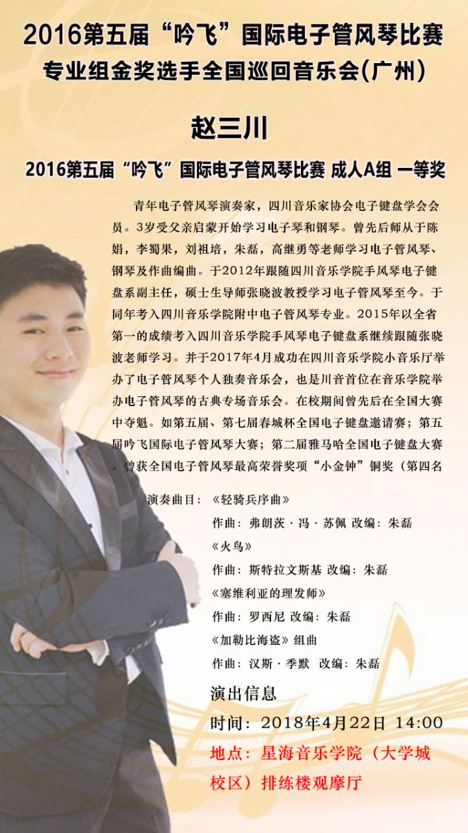 4月21日—4月22日第六屆“吟飛”國際電子管風(fēng)琴比賽中國南方大賽(廣州)即將開賽,本次比賽將在星海音樂學(xué)院大學(xué)城校區(qū)舉辦,請各位參加比賽的選手不要跑錯場地了~